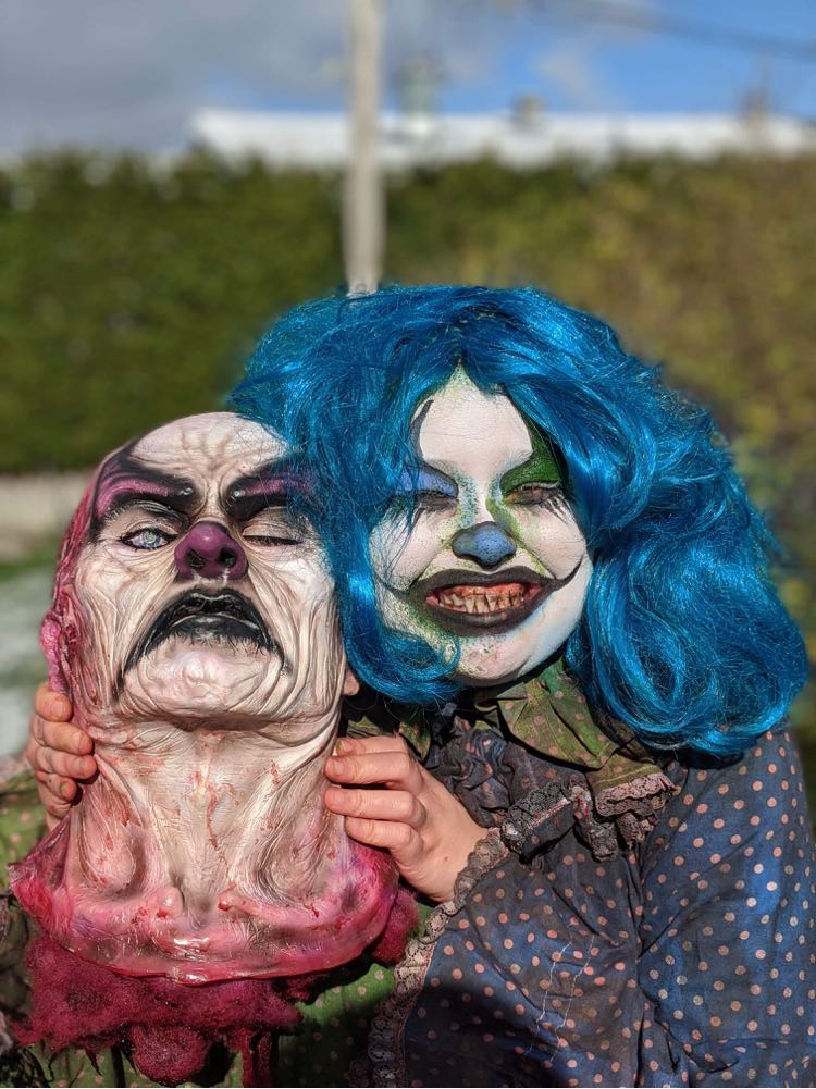 Je suis aussi passionnée de création de masques en latex et accessoires. Je passe de la conception à la sculpture, moulage, aérographe (airbrush) et finalisation complète du produit.